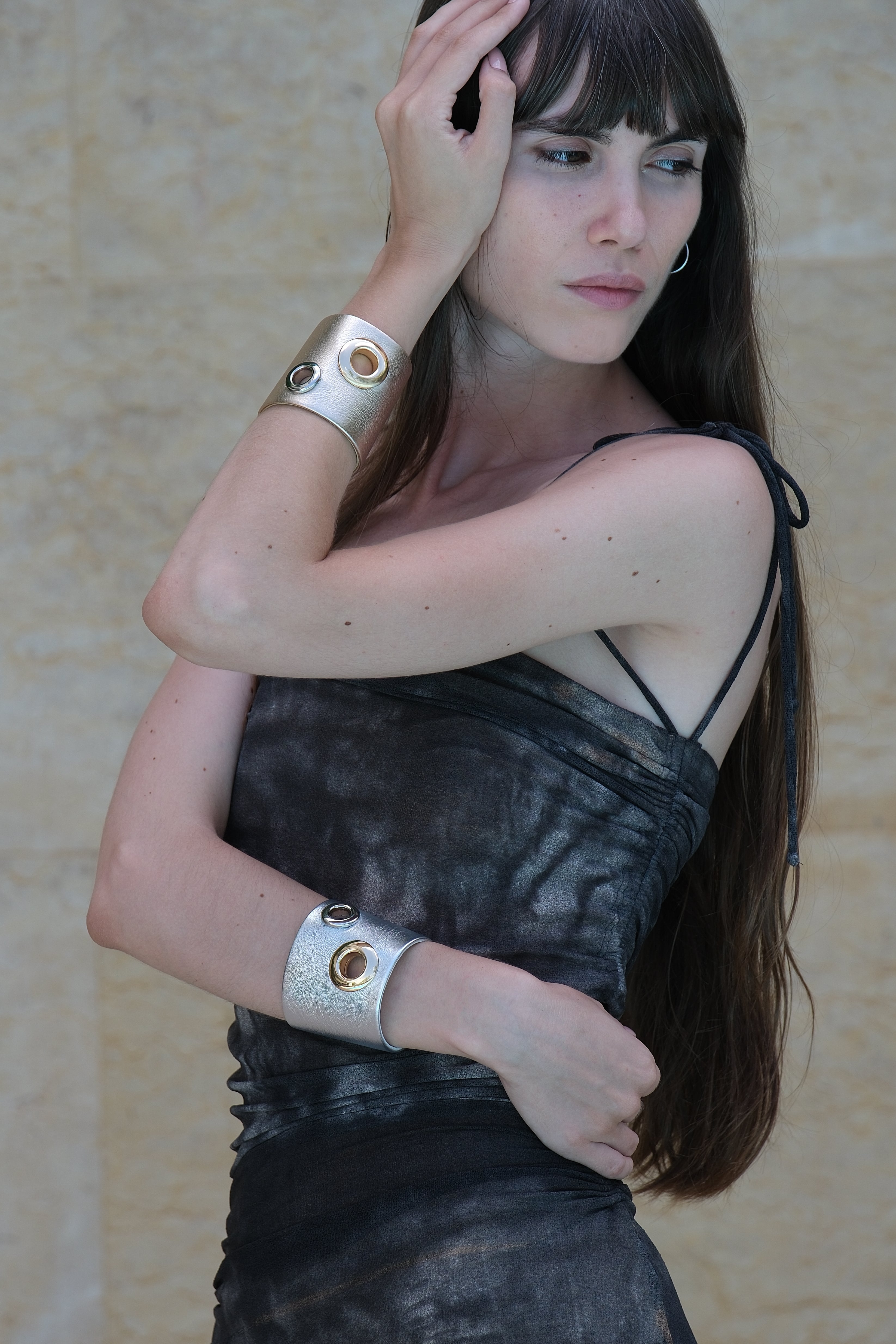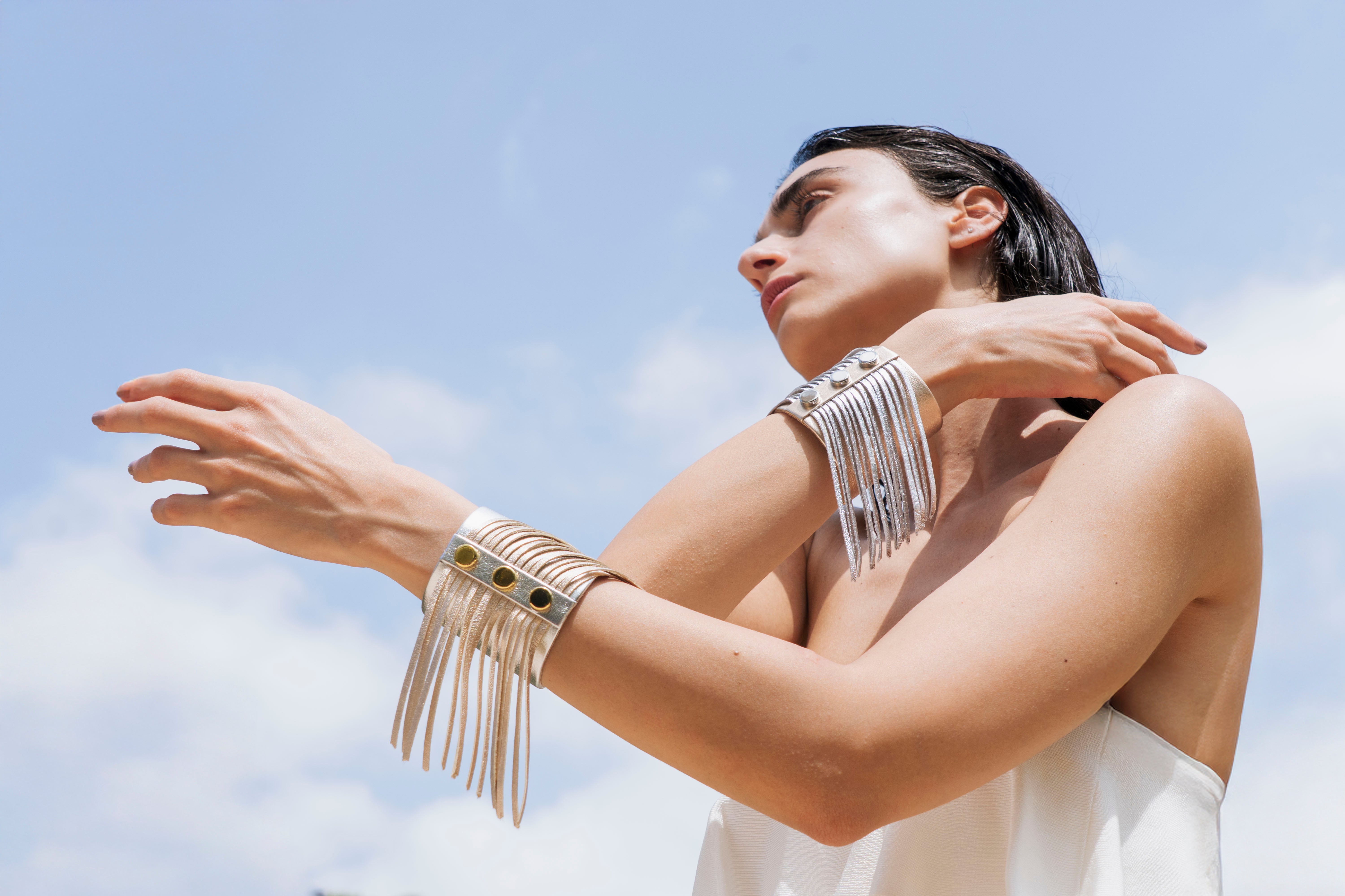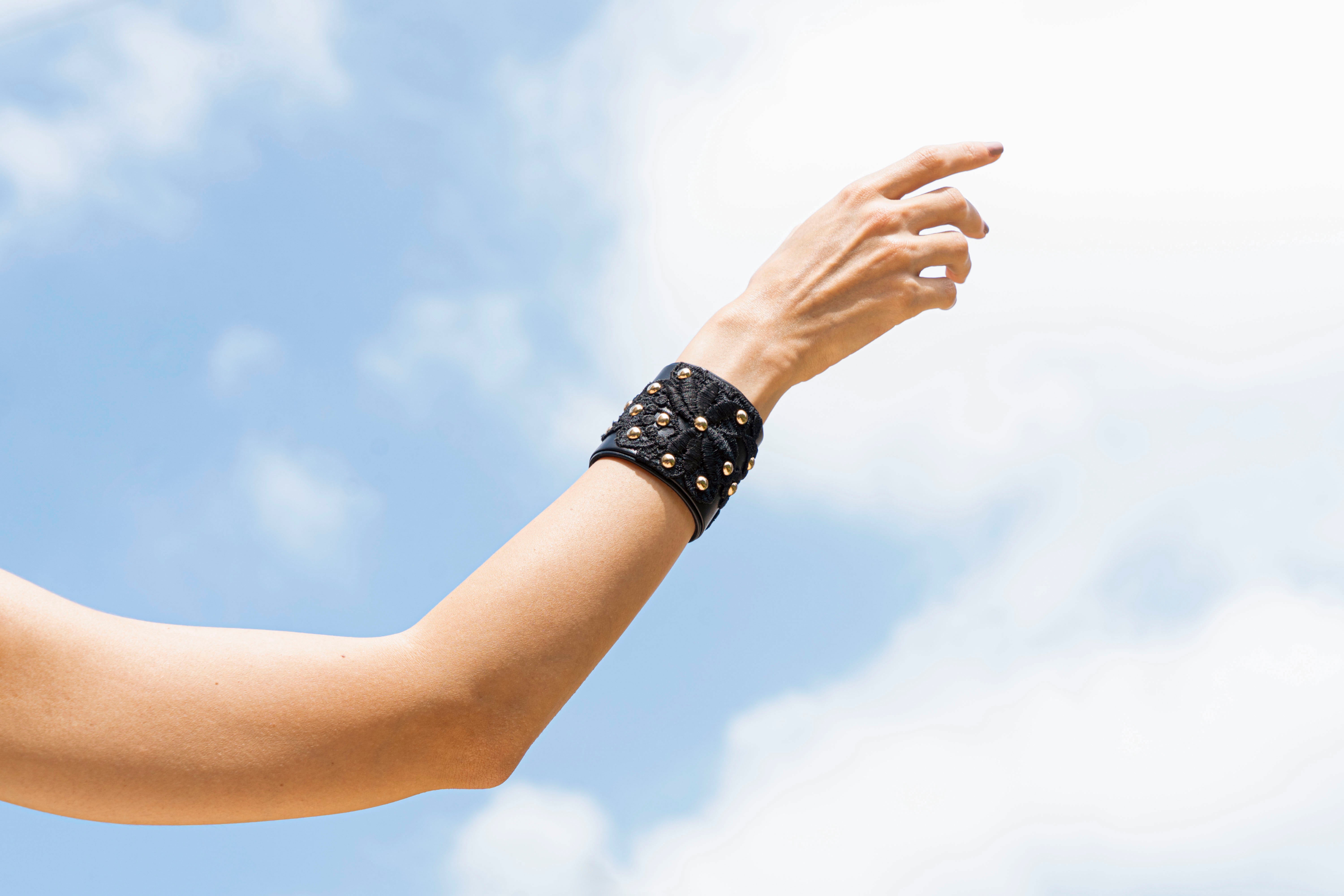 Les manchettes sont essentiellement en cuir noir. Des couleurs de saison, nude ou couleurs vives viennent enrichir la proposition créative au gré des envies de Joanne.