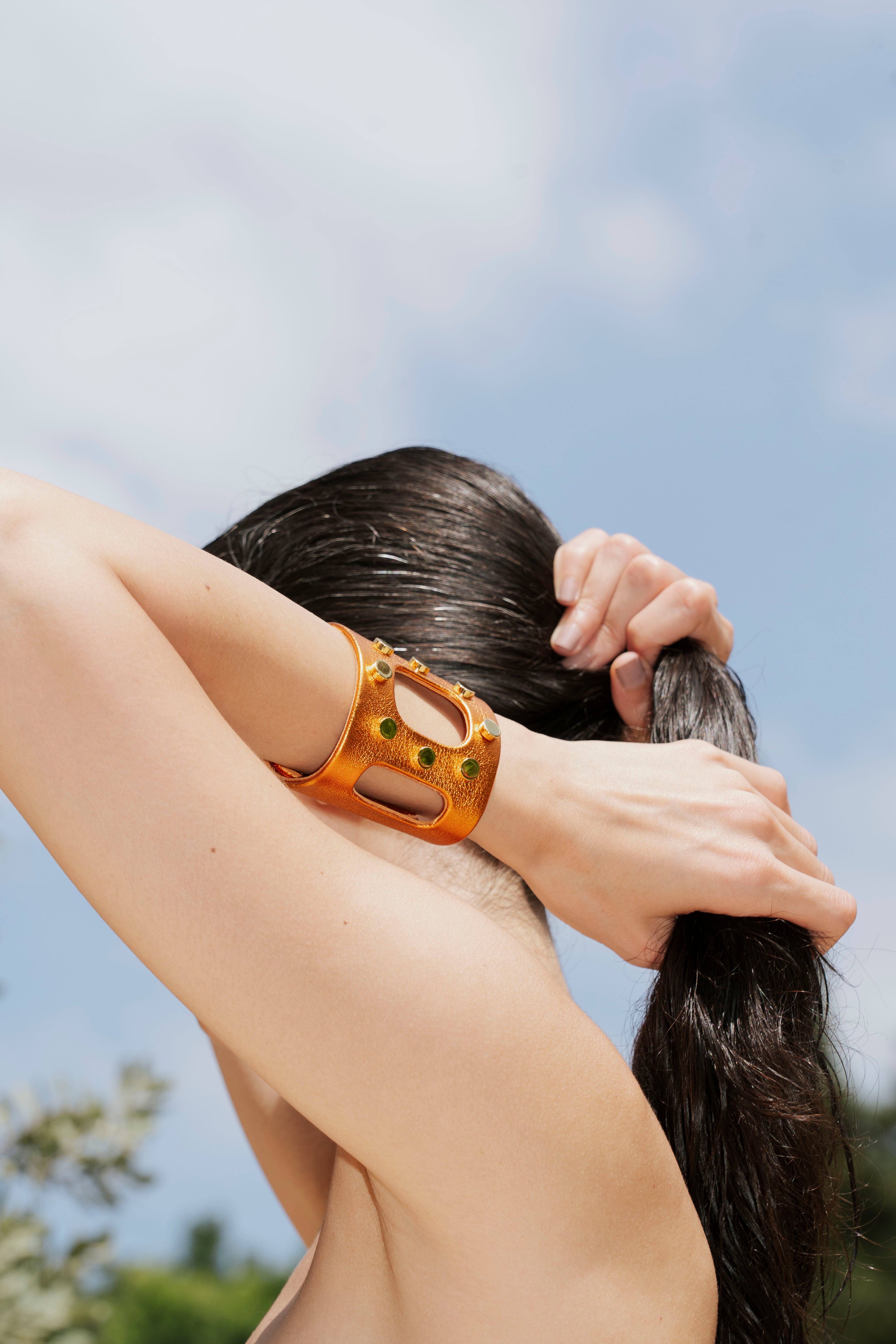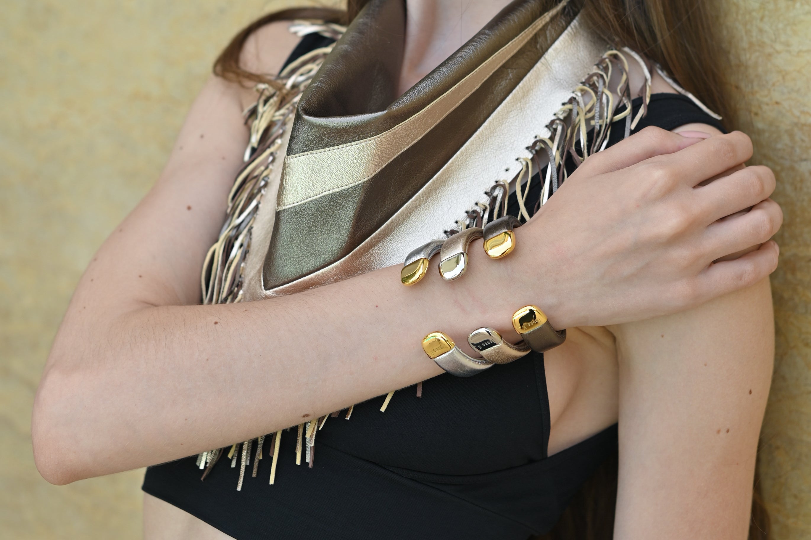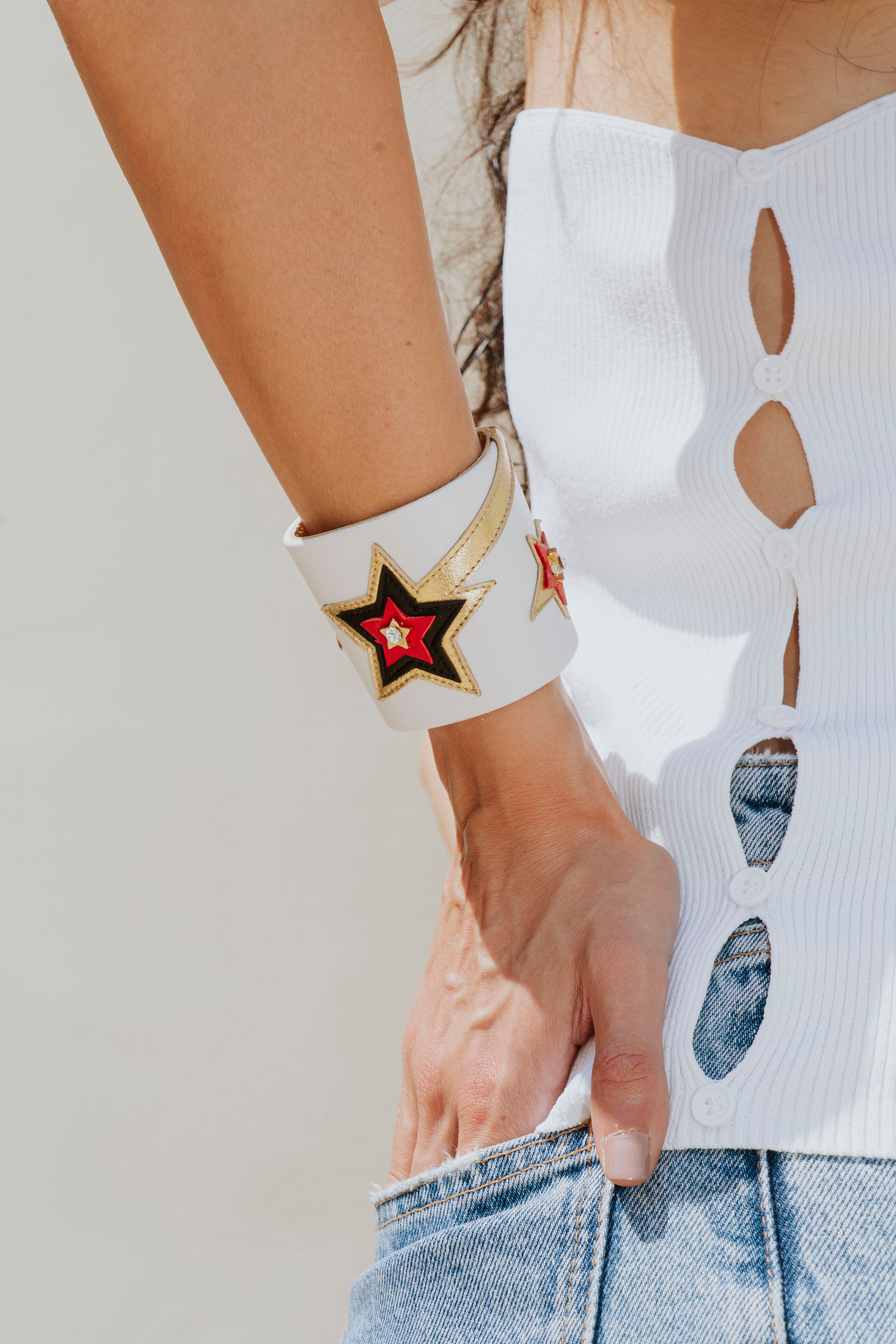Les manchettes sont essentiellement en cuir noir. Des couleurs de saison, nude ou couleurs vives viennent enrichir la proposition créative au gré des envies de Joanne.